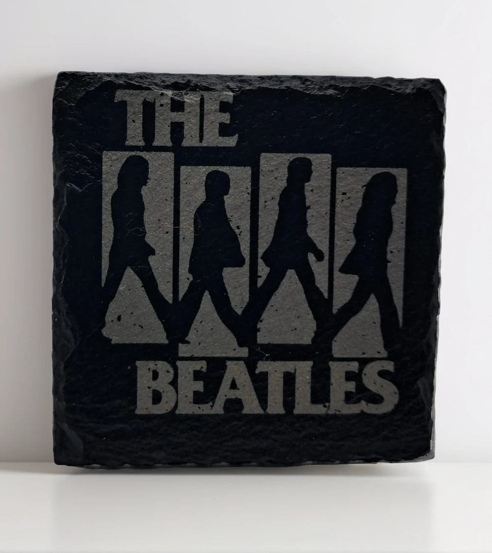A truly iconic handcrafted square slate coaster featuring the unforgettable silhouette of The Beatles on the Abbey Road crossing. This durable, handmade slate item is a must-have piece of music history for any fan.