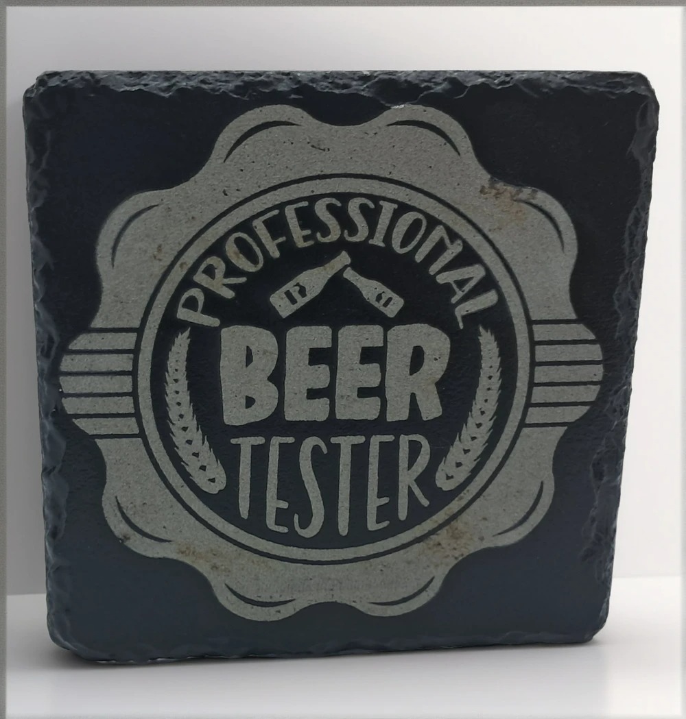 Handcrafted Slate Coaster: “Professional Beer Tester” Engraved Square Drink Mat – Funny Beer Lover Gift