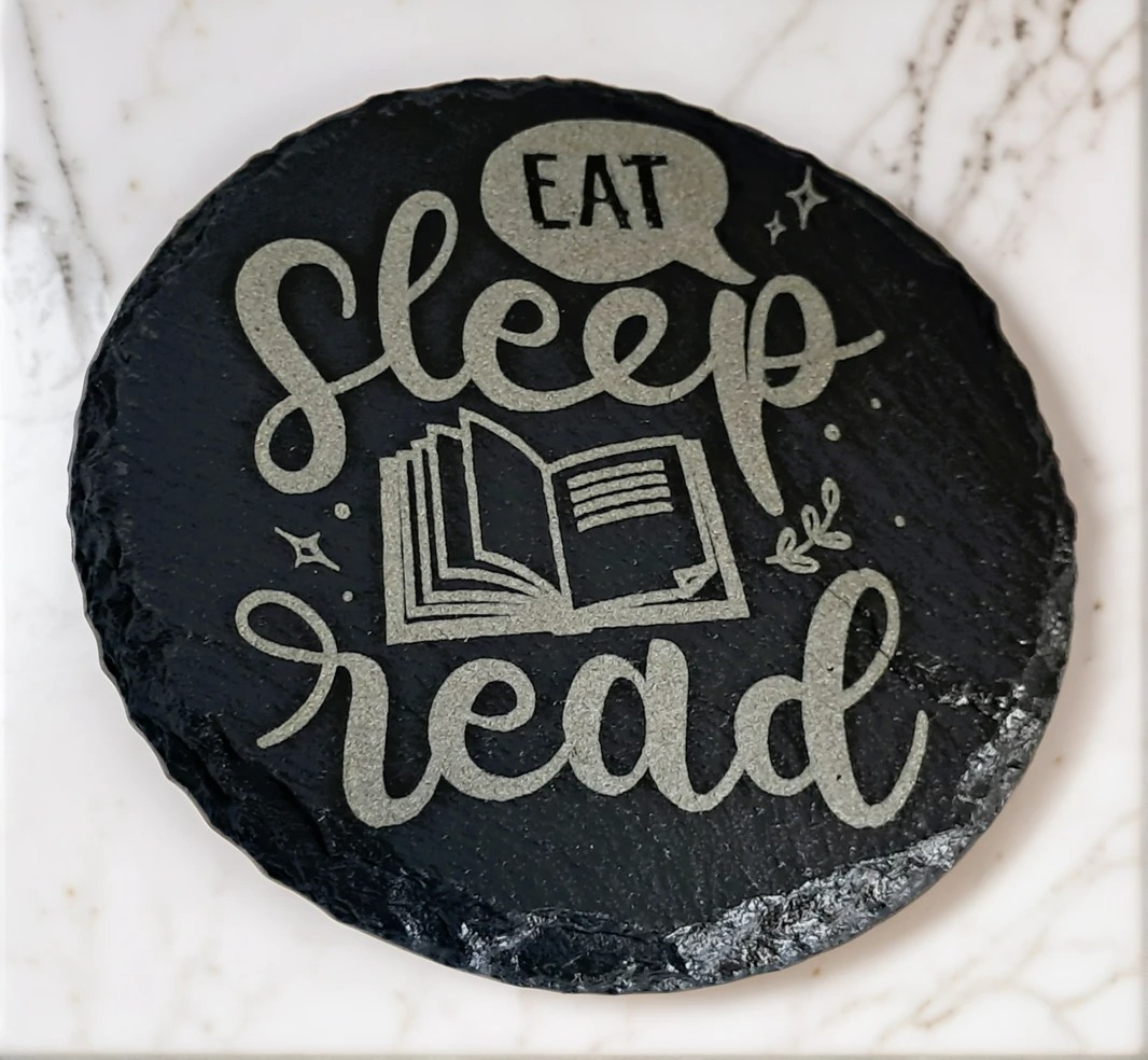 Motivational Handcrafted “Eat Sleep Read” Engraved Round Slate Coaster