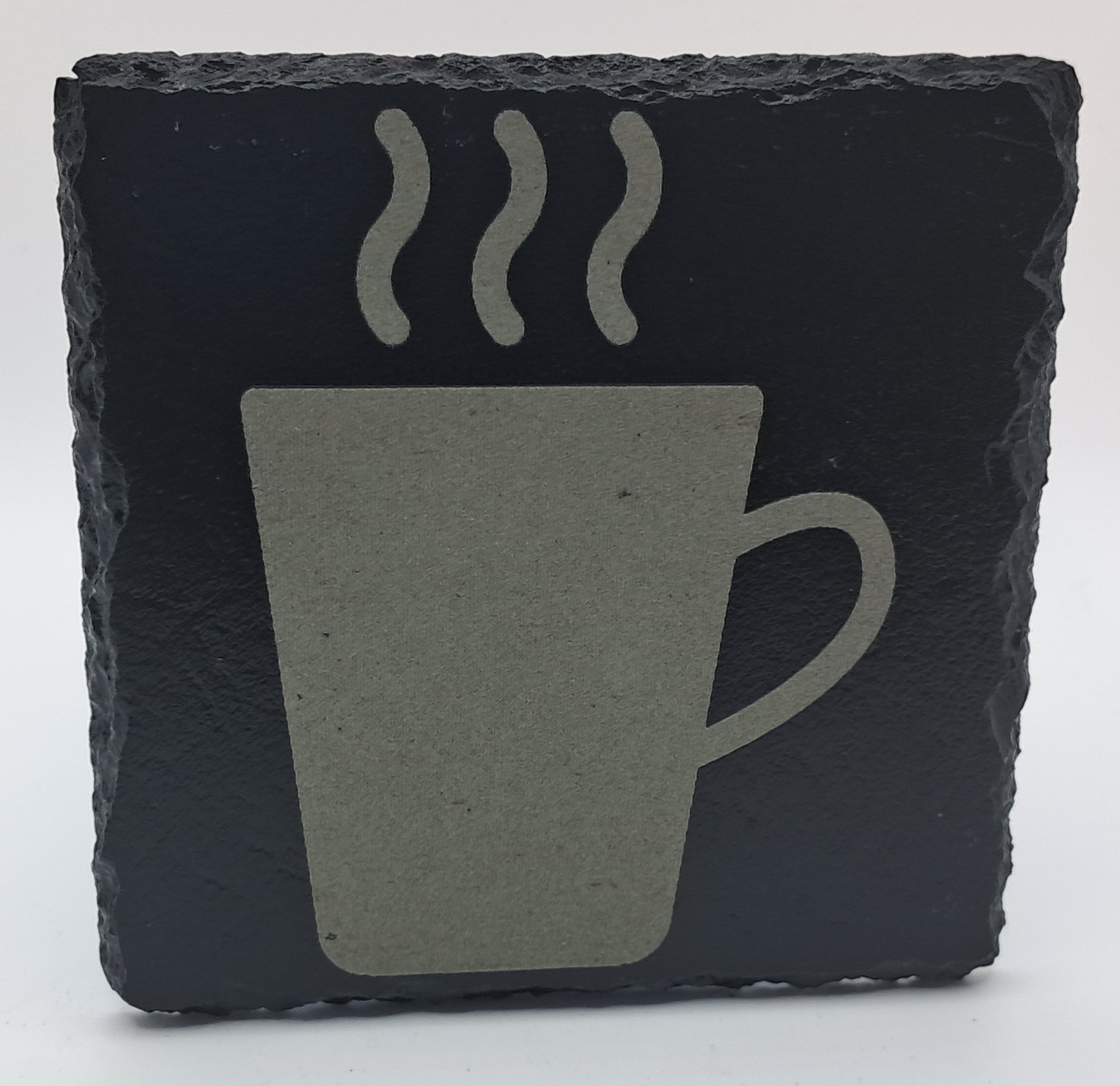 Handcrafted Slate Coaster – Steaming Mug Design
