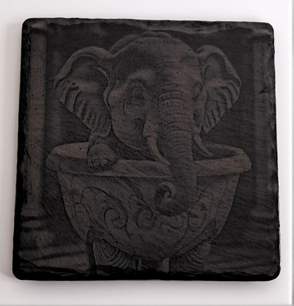 Exotic Handcrafted Baby Elephant Engraved Natural Slate Coaster