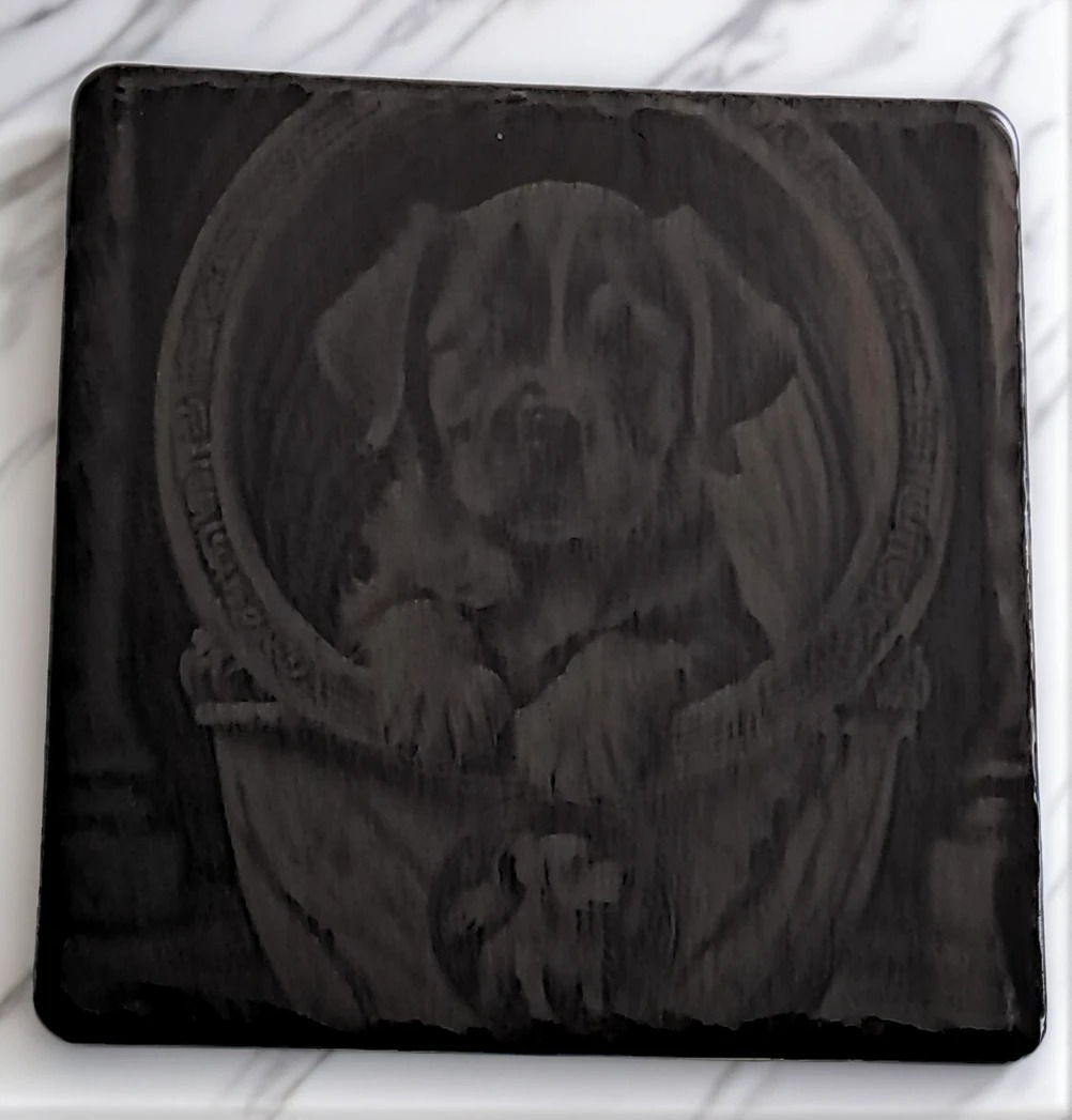 Design: Deep Laser Engraving of a Puppy in a Tub
