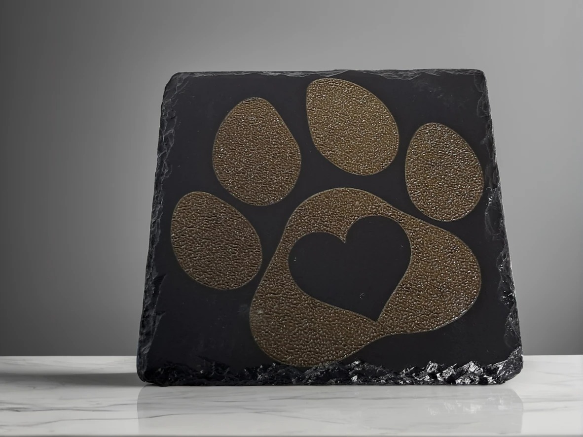 Handcrafted Slate Coaster: Oversized Paw Print with Heart Engraved Square Drink Mat – Sentimental Pet Memorial Gift