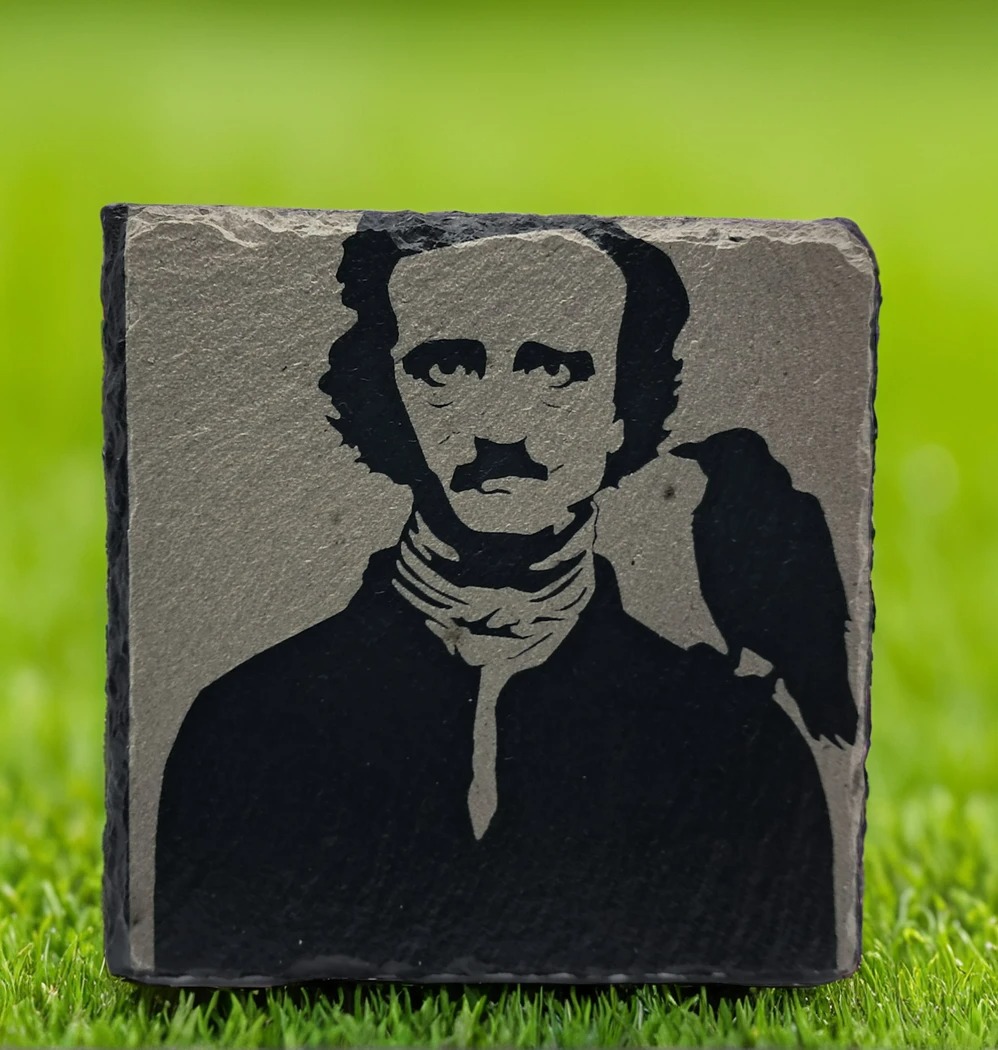Handcrafted Edgar Allan Poe & Raven Slate Coaster – Gothic Literature Gift