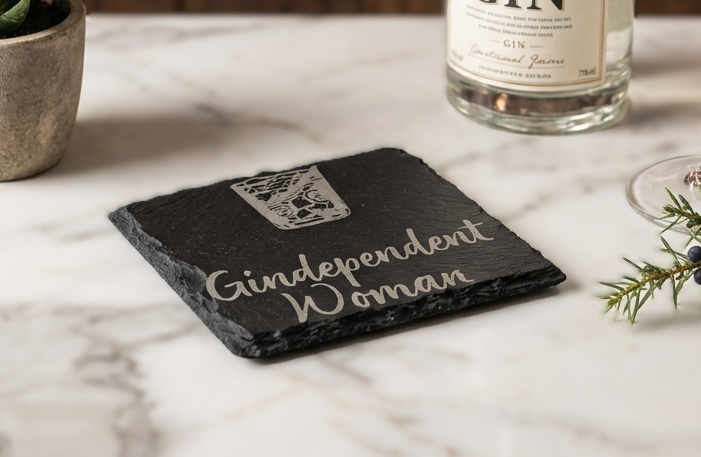 “Gindependent Woman” Laser-Engraved Slate Coaster