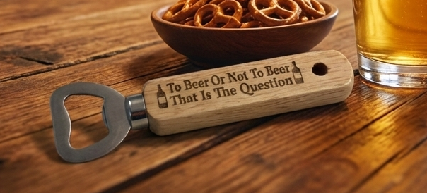 A witty, handcrafted wooden bottle opener featuring the iconic “To Beer Or Not To Beer” engraving. This high-quality bar tool combines a natural timber handle with a durable stainless steel opener, making it a fantastic gift for any beer enthusiast with a sense of humour.