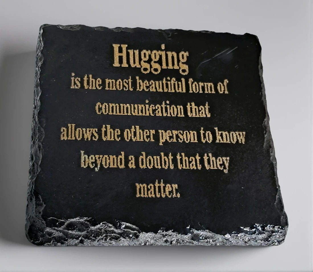 Handcrafted Engraved Square Slate Coaster – “Hugging is the most beautiful form of communication” Quote – Heartfelt Gift