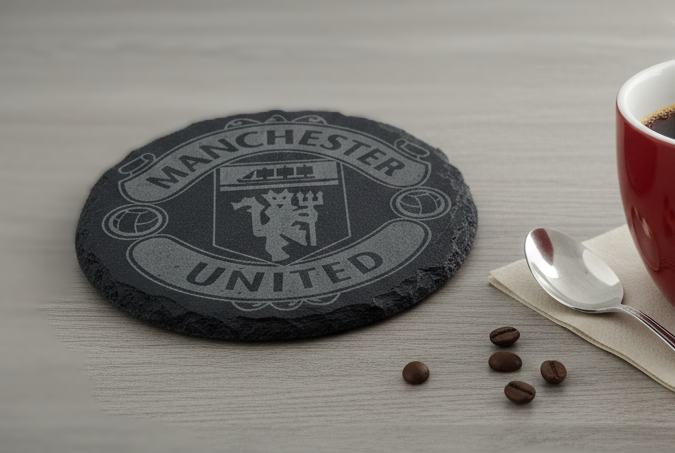 Support the Red Devils in style with this premium handcrafted circular slate coaster. Featuring a finely detailed laser-engraved Manchester United FC crest, this natural stone piece is the perfect addition to any fan’s coffee table or home bar.