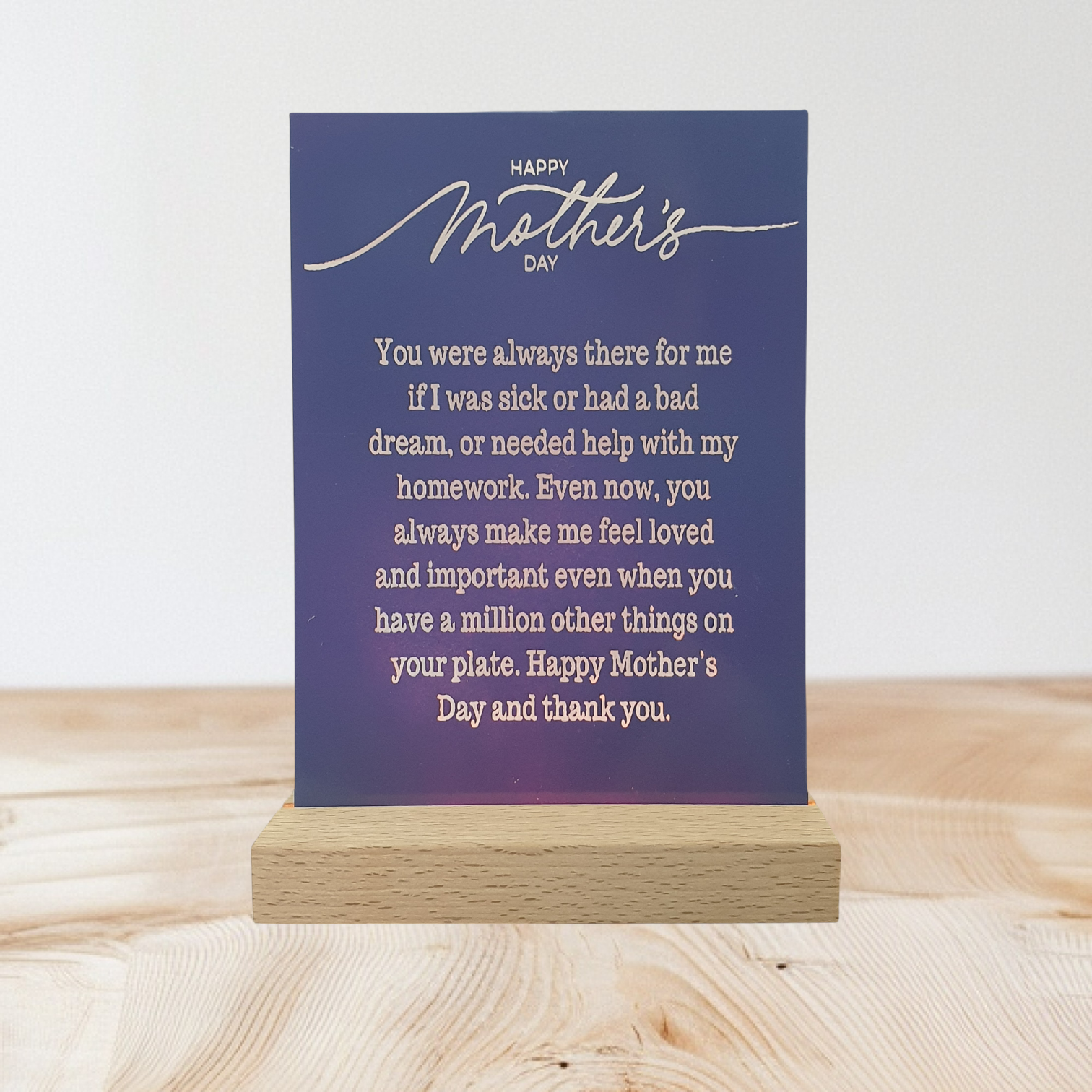 Heartfelt Mother’s Day message elegantly engraved.