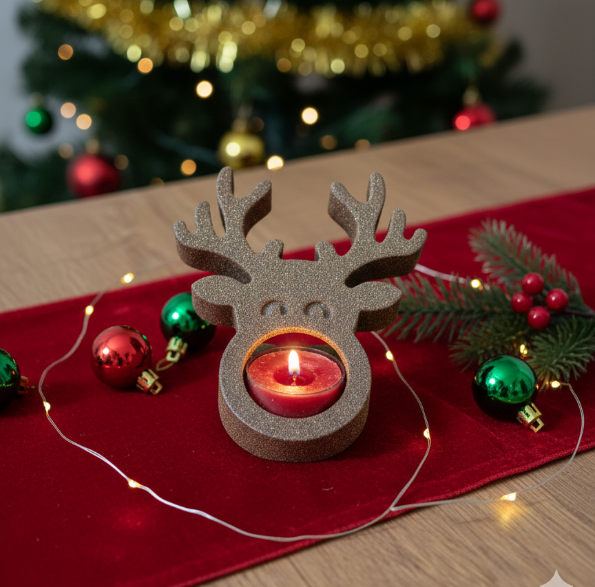 Ambient Lighting: The holder is perfectly sized for a standard tealight candle (one candle is included, as shown). When lit, the flame casts a warm, inviting glow through the reindeer’s “nose,” creating a cozy and magical atmosphere for your Christmas gatherings.
