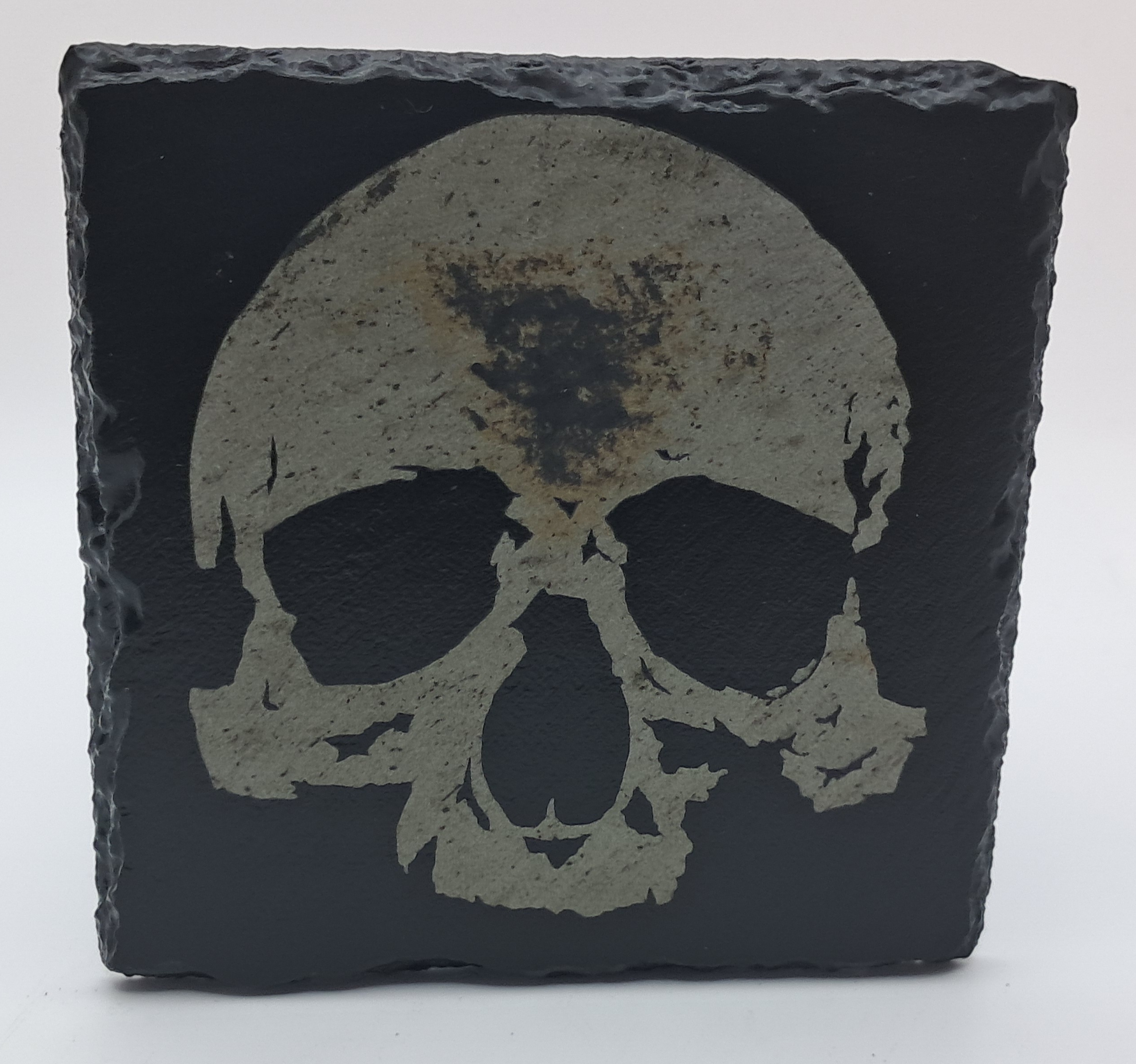 Handcrafted Classic Human Skull Slate Coaster – Gothic Minimalist Art