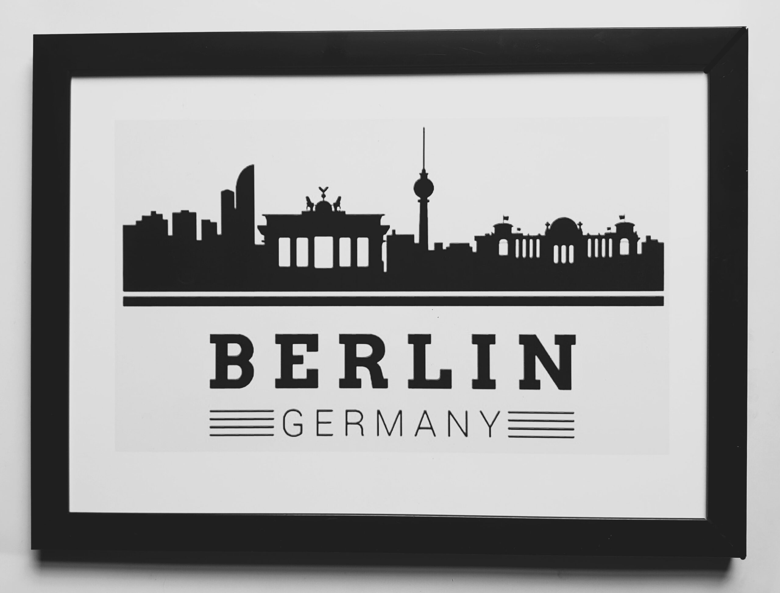 A beautifully printed A4 design featuring the iconic Berlin city skyline silhouette in a sleek black frame. Perfect minimalist wall decor for German souvenir lovers, students, or as a unique gift for a loved one.