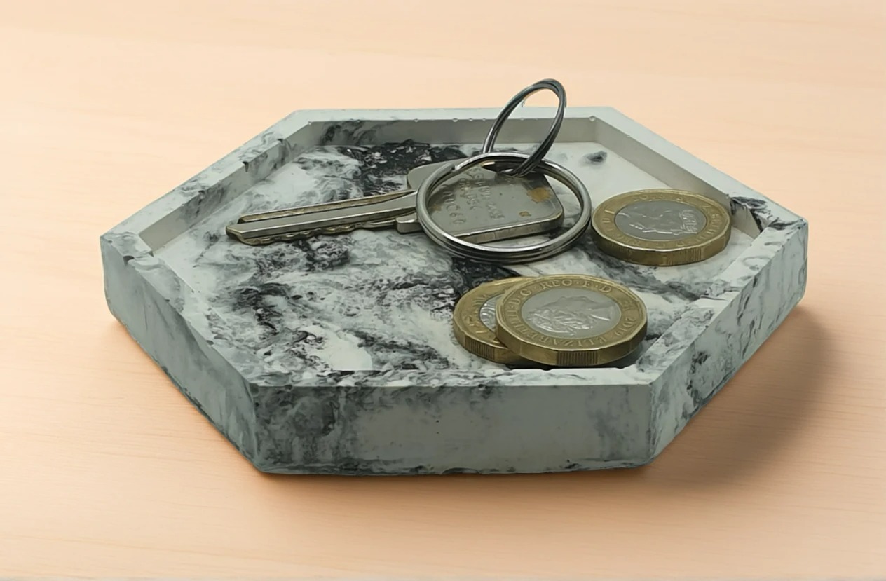 Handmade Hexagonal Marbled Black & White Trinket Tray – Entryway/Desk Organizer