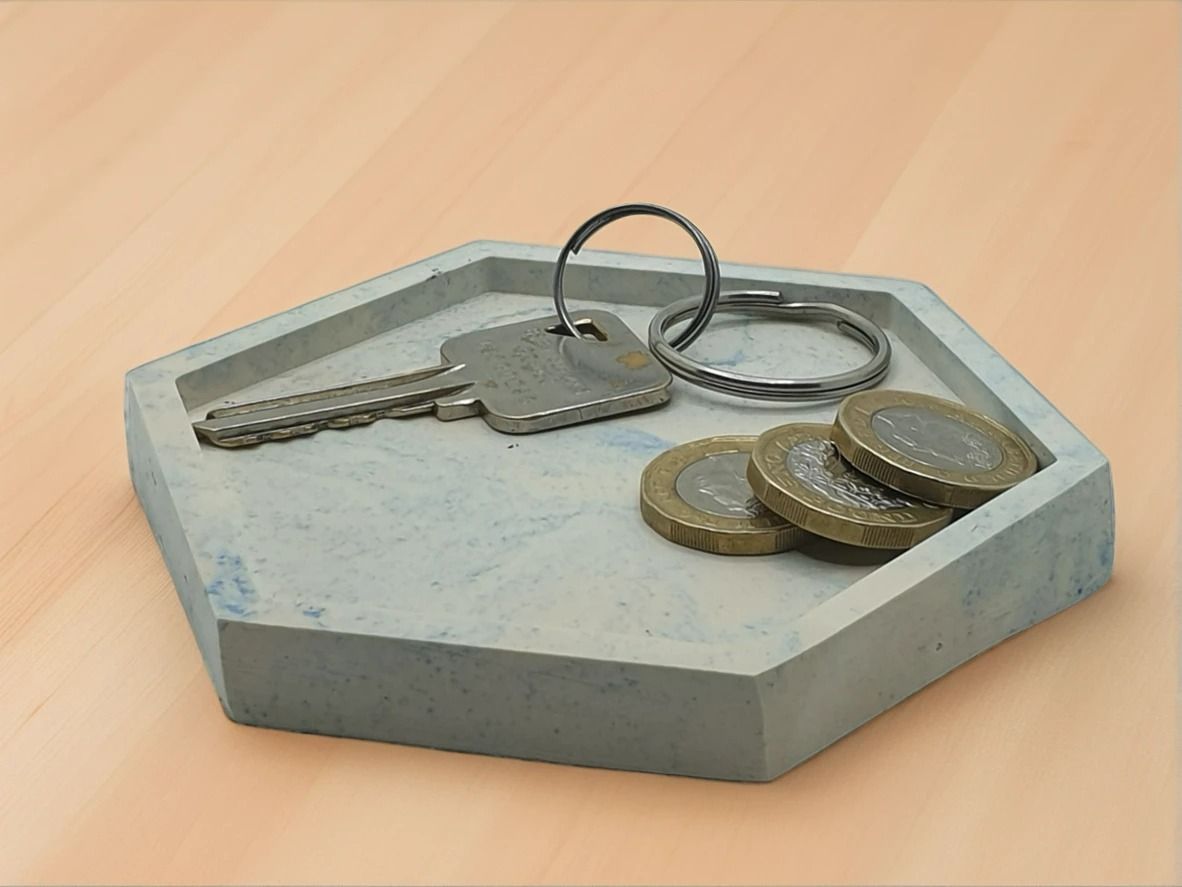 Geometric Calm, Artisan Crafted! This handmade hexagonal trinket tray features a serene blue and white marble swirl, perfect for keys, coins, or jewellery. Made from durable eco resin, it’s a stylish and versatile catchall for any space.