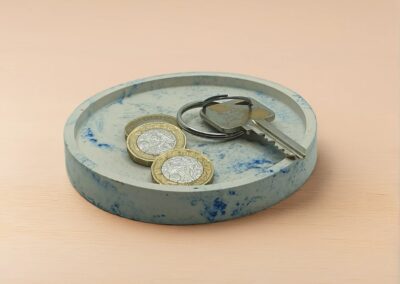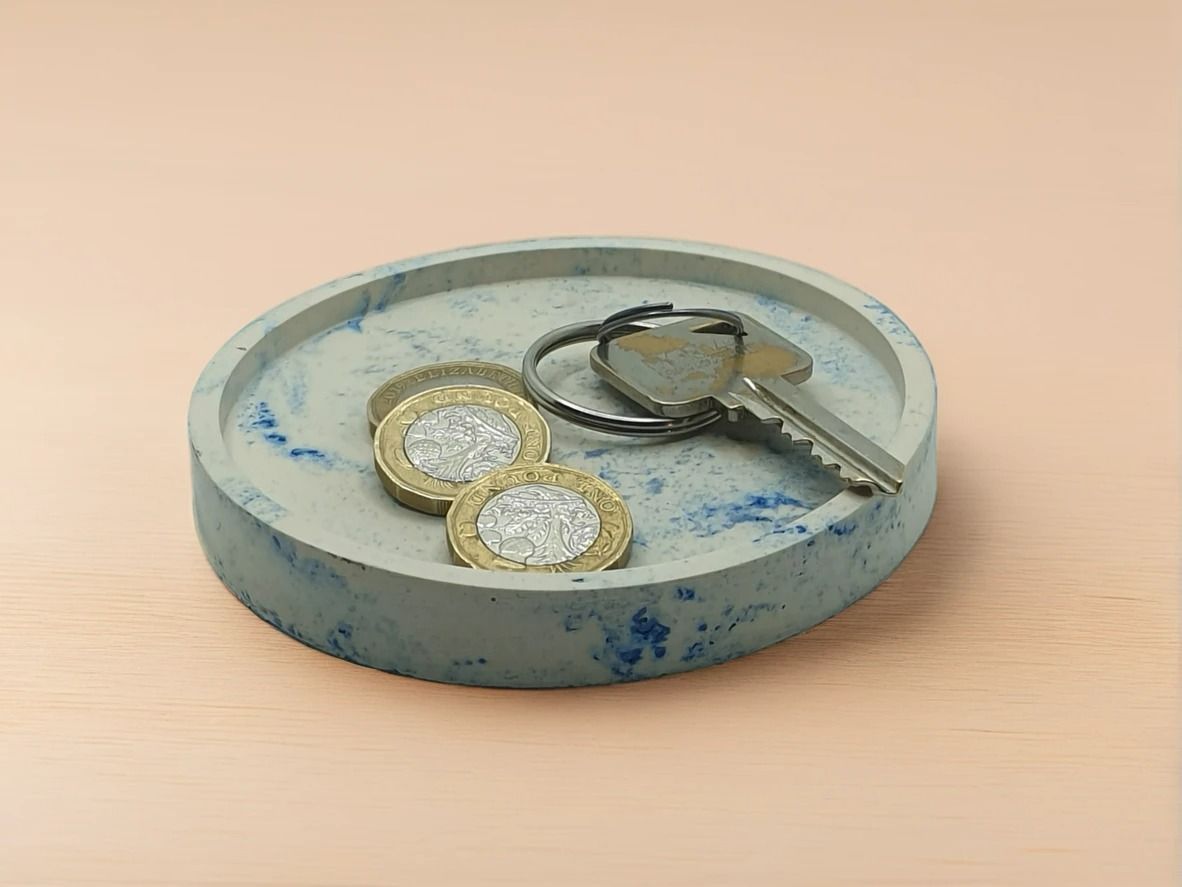Handmade Blue Marbled Eco Resin Round Trinket Tray – Entryway/Desk Organizer