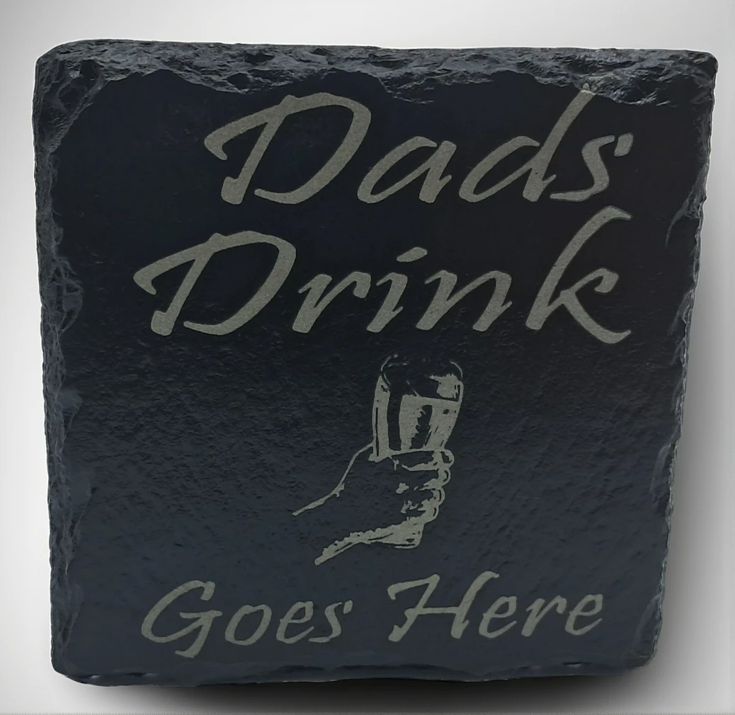 Handcrafted Slate Coaster – “Dad’s Drink Goes Here”