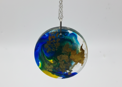 Dive into the captivating depth of this exclusive handcrafted ‘Little World’ pendant necklace. Each circular pendant is individually created using high-quality jeweler’s resin, suspending rich, abstract pigments of deep oceanic blues, vibrant greens, and terrestrial browns. The unique marbling and layering of colours mean that no two pieces are exactly alike, ensuring your necklace is truly one-of-a-kind.