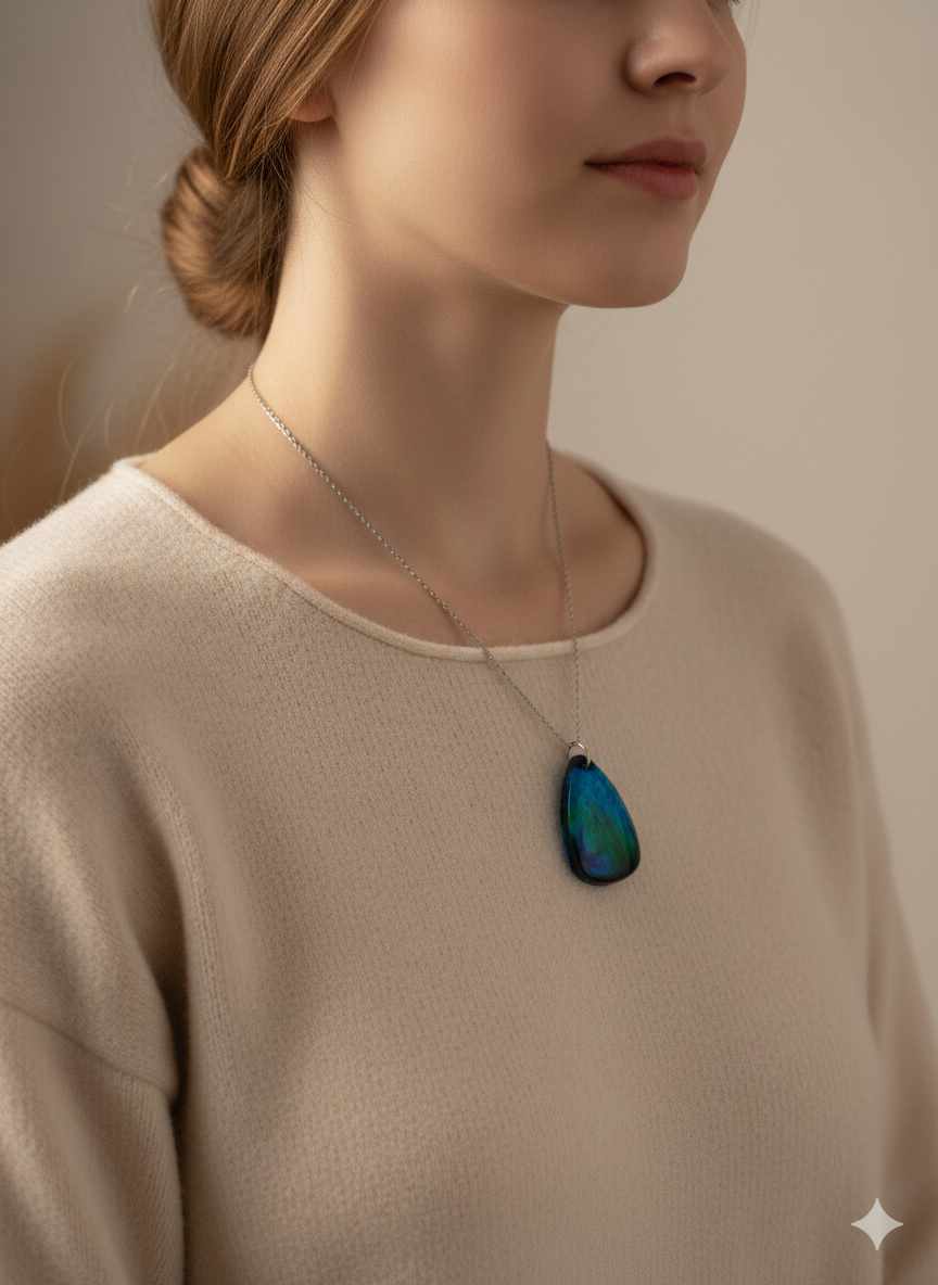 Handcrafted Teardrop Resin Necklace: Dynamic Aqua Blue to Emerald Green Chroma Shift