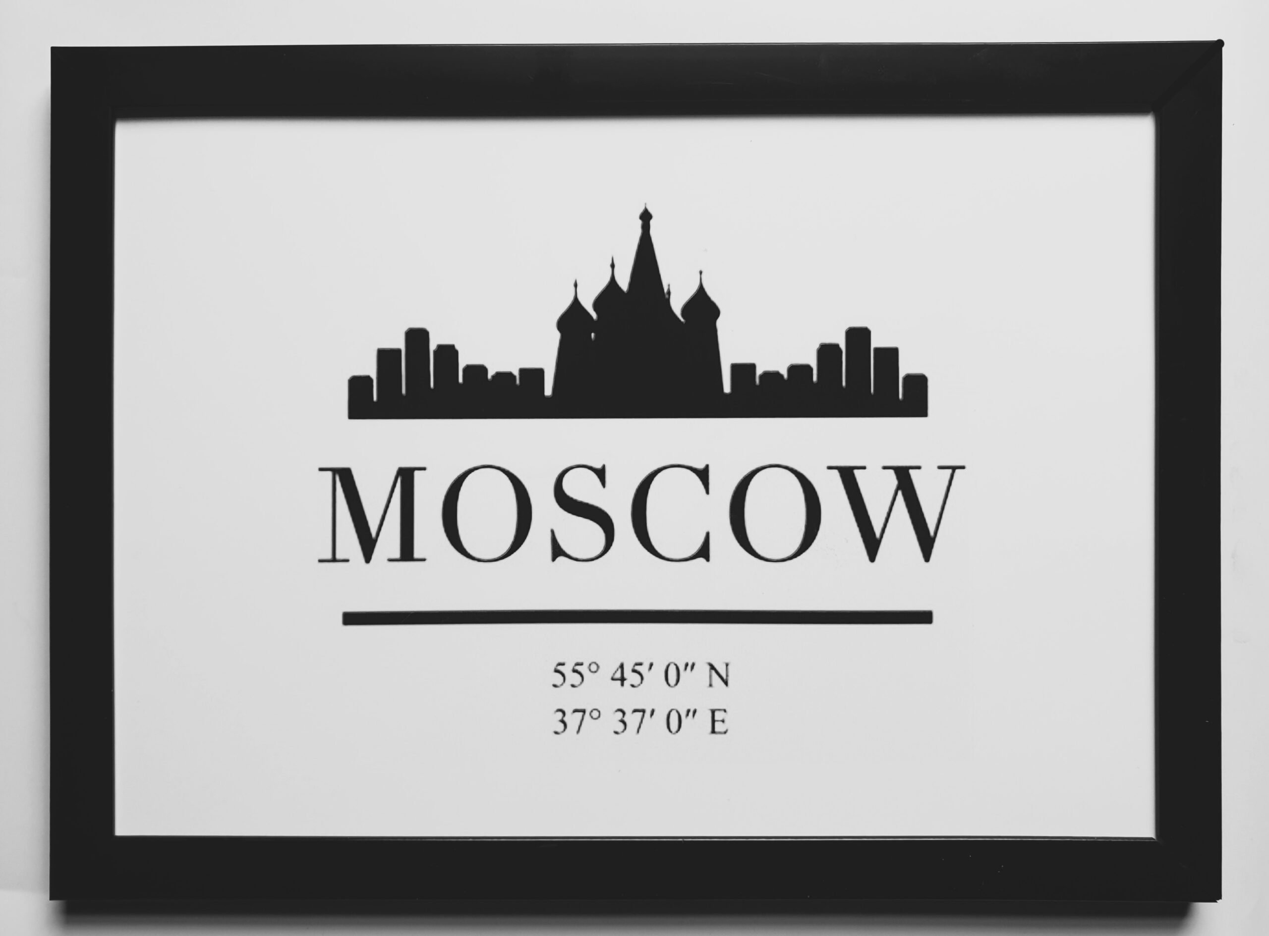Capture the historic beauty of the Russian capital with this handcrafted black and white A4 print of the Moscow skyline. Featuring the unmistakable dome and spires of St. Basil’s Cathedral, this minimalist, elegant piece is perfect for adding a touch of worldly sophistication to any space. It comes ready-to-hang in a sleek black frame.