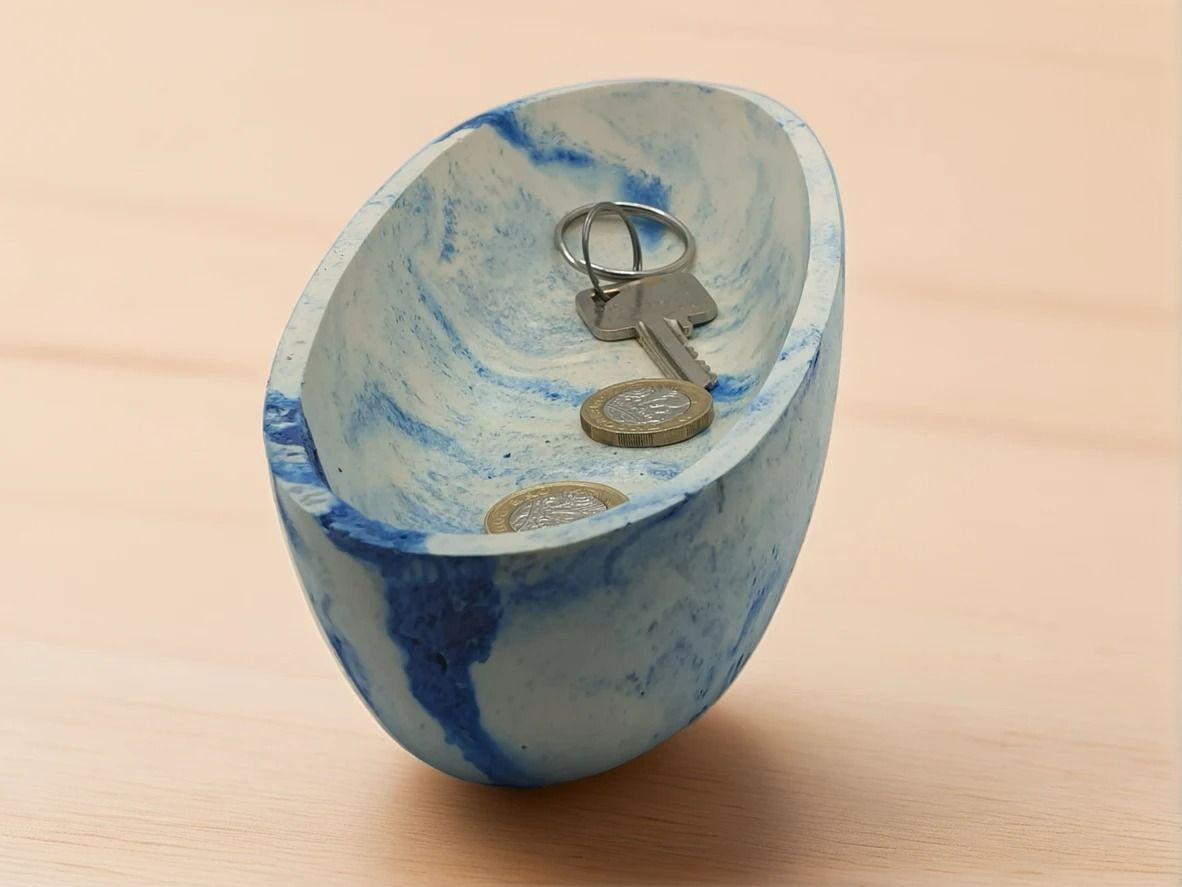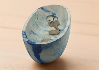 Elegant Utility, Artisan Crafted! This handmade oval trinket tray features a serene blue and white marble swirl, perfect for keys, coins, or jewellery. Made from durable eco resin, it’s a stylish and versatile catchall for any space.