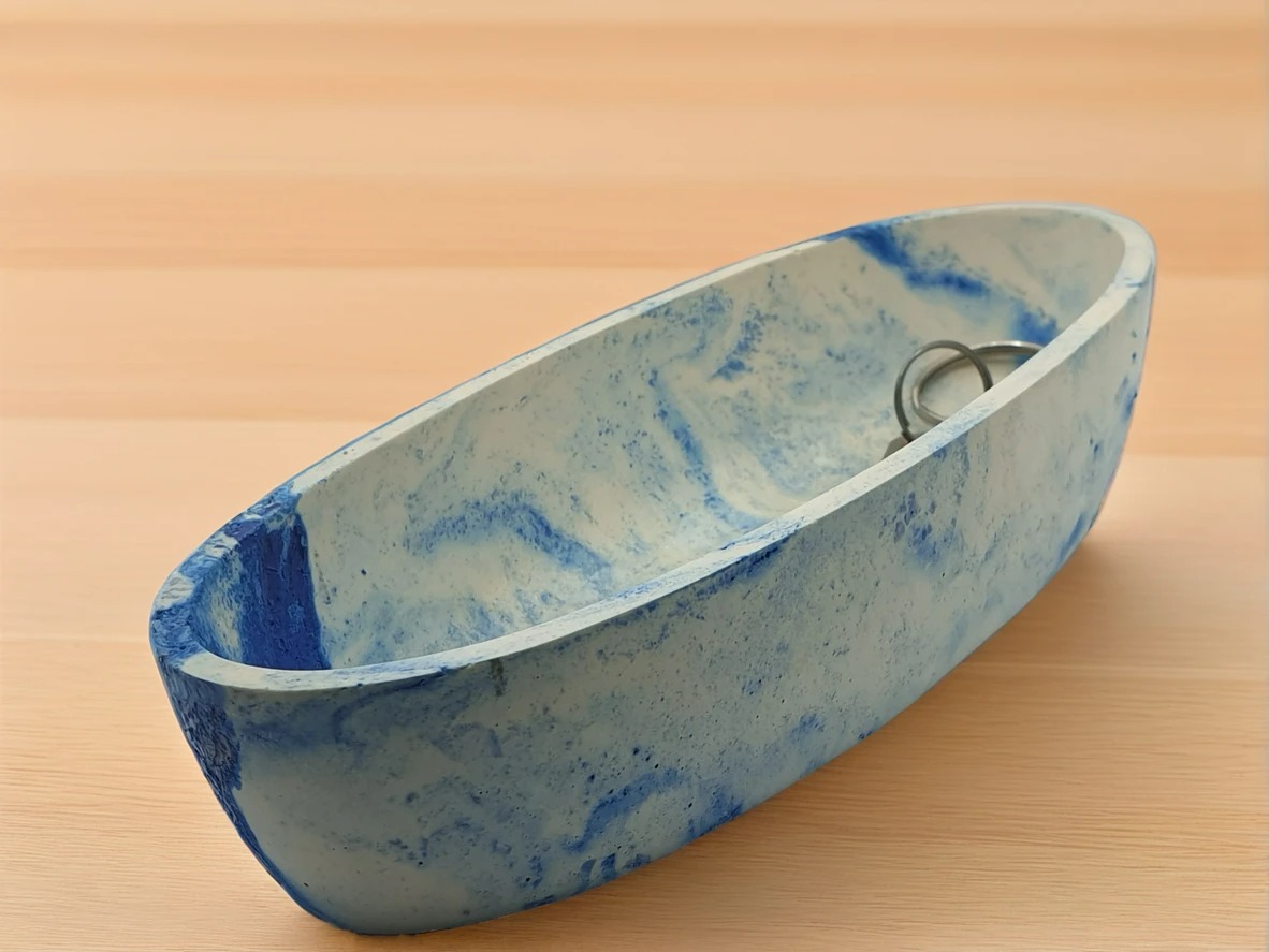 Handmade Oval Blue Marbled Eco Resin Trinket Tray – Entryway/Desk Organizer