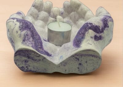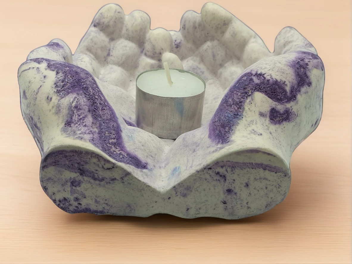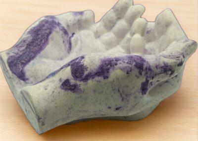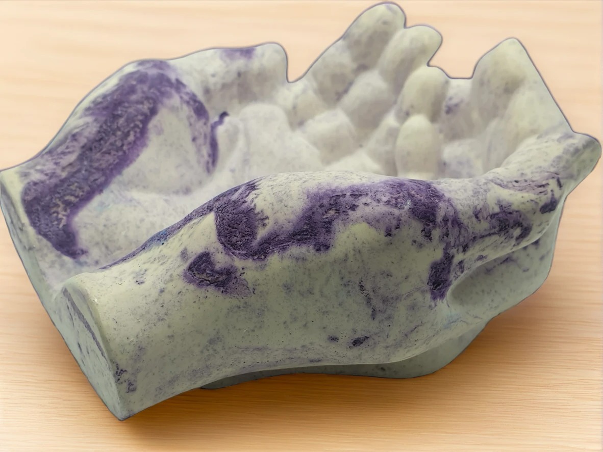 Design: Sculptural Hand/Palm Shape with Unique Purple & White Marble Swirl