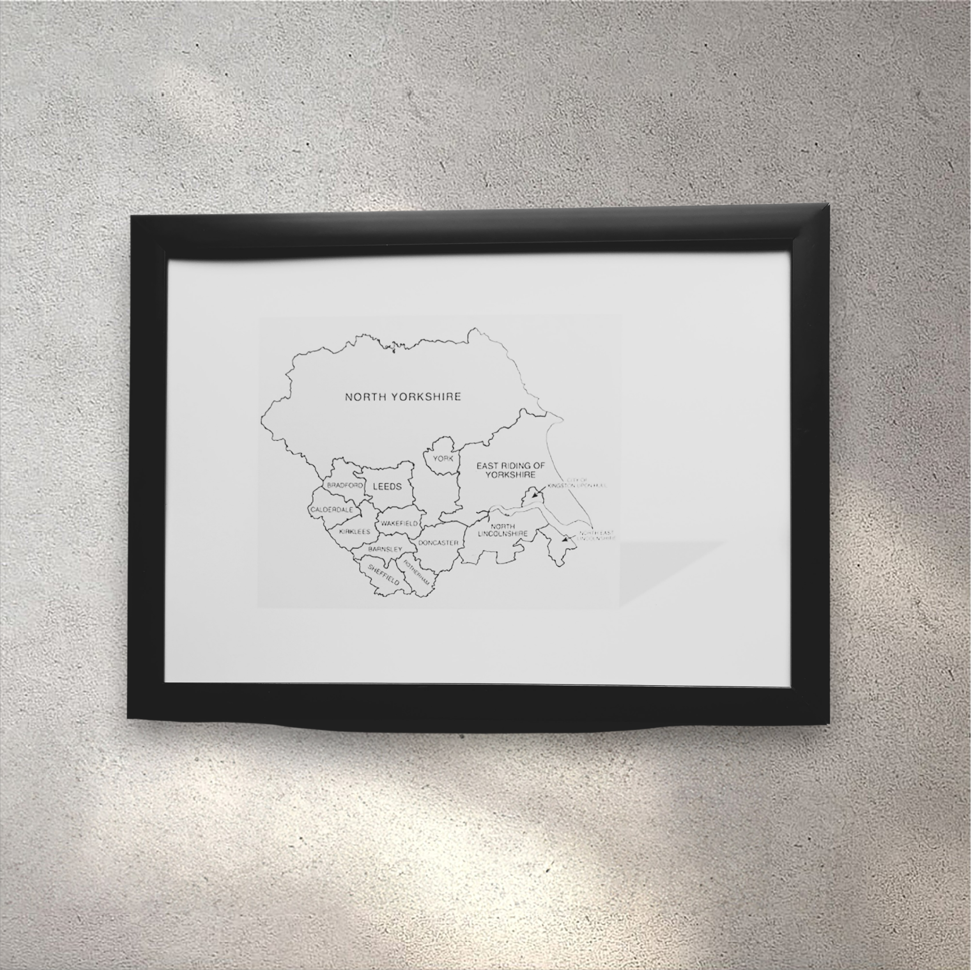 Handcrafted Yorkshire Map A4 Framed Print | UK County Divisions Wall Art | Unique Home Decor Gift