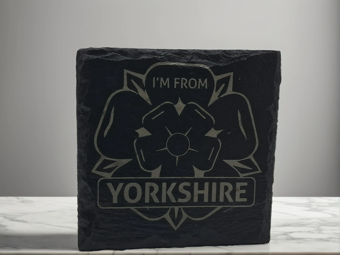 Celebrate your heritage with this beautiful handcrafted slate coaster featuring the iconic Yorkshire Rose emblem and the proud text: “I’M FROM YORKSHIRE.” Permanently laser-engraved for a detailed finish, this durable coaster is an elegant, functional gift for anyone who cherishes their Yorkshire roots.